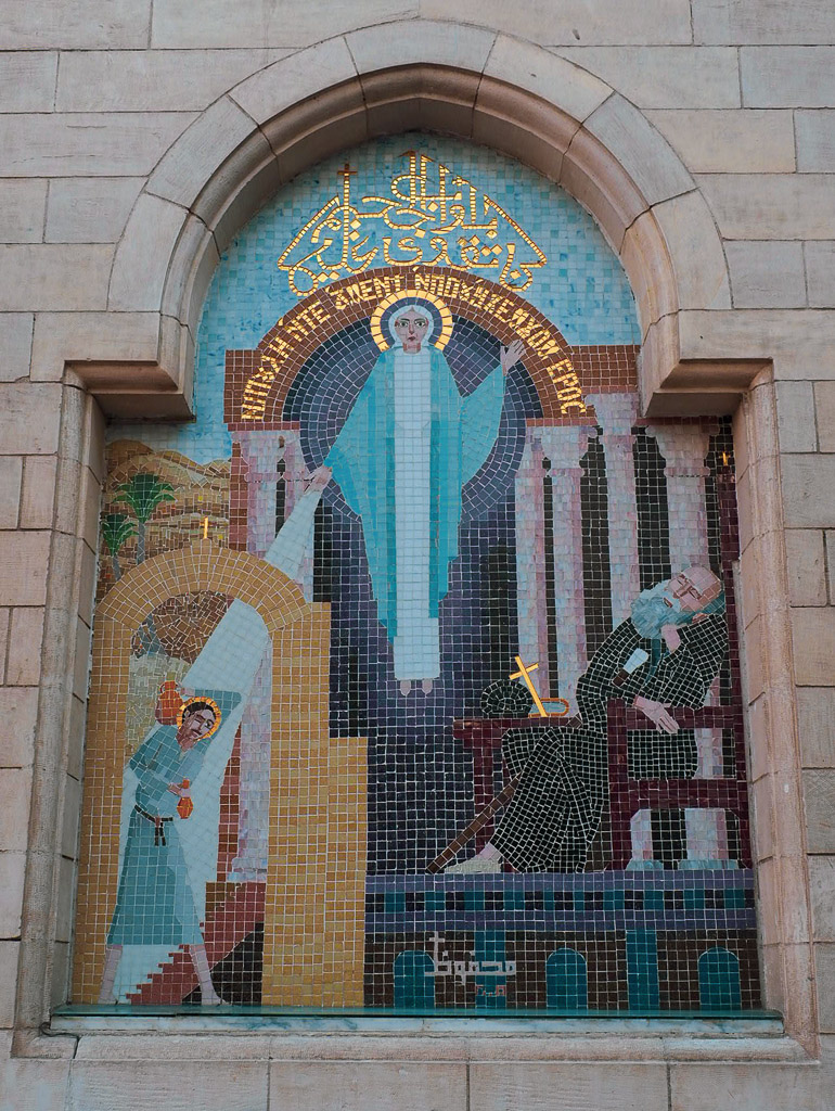 ผนังด้านนอกโบสถ์มีงานโมเสกที่ทำเป็นนิทานเกี่ยวกับศาสานคริสติ์ สีสวยสดและน่ารักมากๆ ถ้าจะว่าไปชอบส่วนนี้ที่สุดจากทุกสถานที่ๆไปเยือนในระแวกนี้ สำหรับชาวคริส โดยเฉพาะ Orthodox จะต้องเข้ามาสักการะที่โบสถ์นี้ แต่อย่างไรก็ดี เราจะเห็นชาวตะวันตกมาเที่ยวบริเวณนี้เยอะมาก เพราะเขาสนใจในเรื่องราวของ Holy Family ครอบครัวพระเยซู