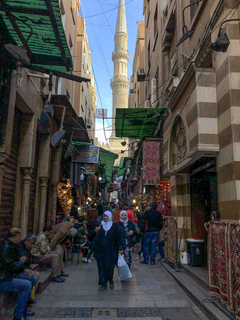 สุดท้ายเราคงจากไคโรไปไม่ได้โดยที่ไม่ได้ไปเดินเที่ยวใน Khan El-Khalili Bazaar ที่ตลาดอายุพันปีกลางไคโร ตลาดนี้สร้างขึ้นตั้งแต่ ค.ศ. 970 พอพอกับช่วงที่ไคโรขึ้นเป็นเมืองหลวงของอียิปต์ต่อจาก Alexandria อเล็กซานเดรีย ซึ่งเริ่มในราชวงศ์ Fatimid ซึ่งเป็นราชวงศ์ที่มาจากอาหรับ ปกครองทะเลแดงและแอฟริกาเหนือทั้งหมด
